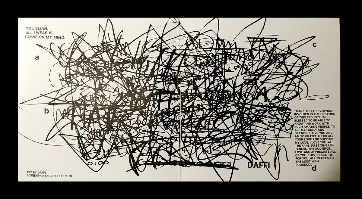 Limited pressing of 'DAFFI' on heavy black 12" double vinyl, tucked in black paper inner sleeves, and housed inside a wide spine single-pocket full-color offset-printed outer jacket in a protective plastic sleeve.